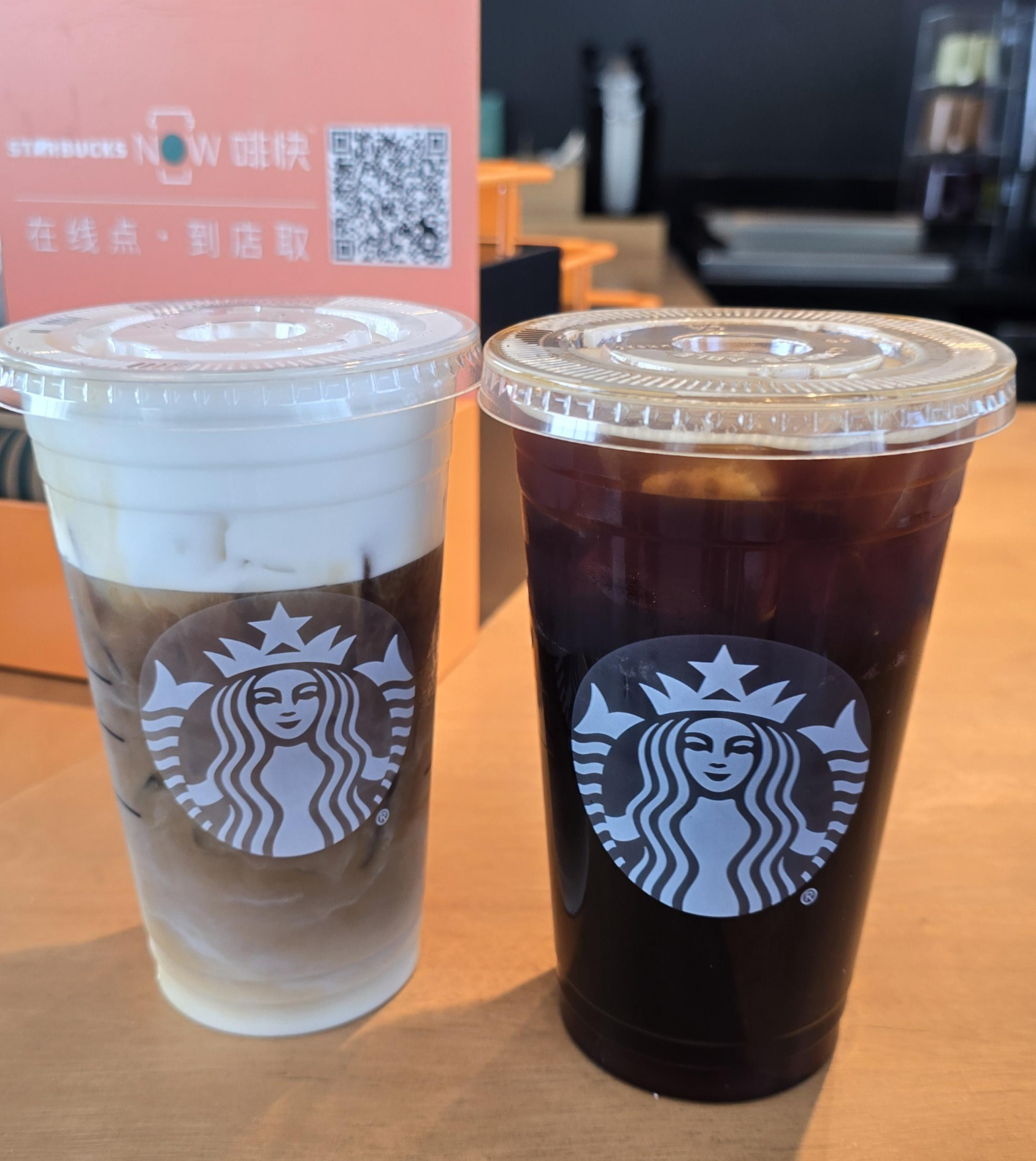 베이징 공항 내 스타벅스는 아이스 아메리카노 톨 사이즈 기준 27위안, 아이스 카페라떼는 30위안이었어요.