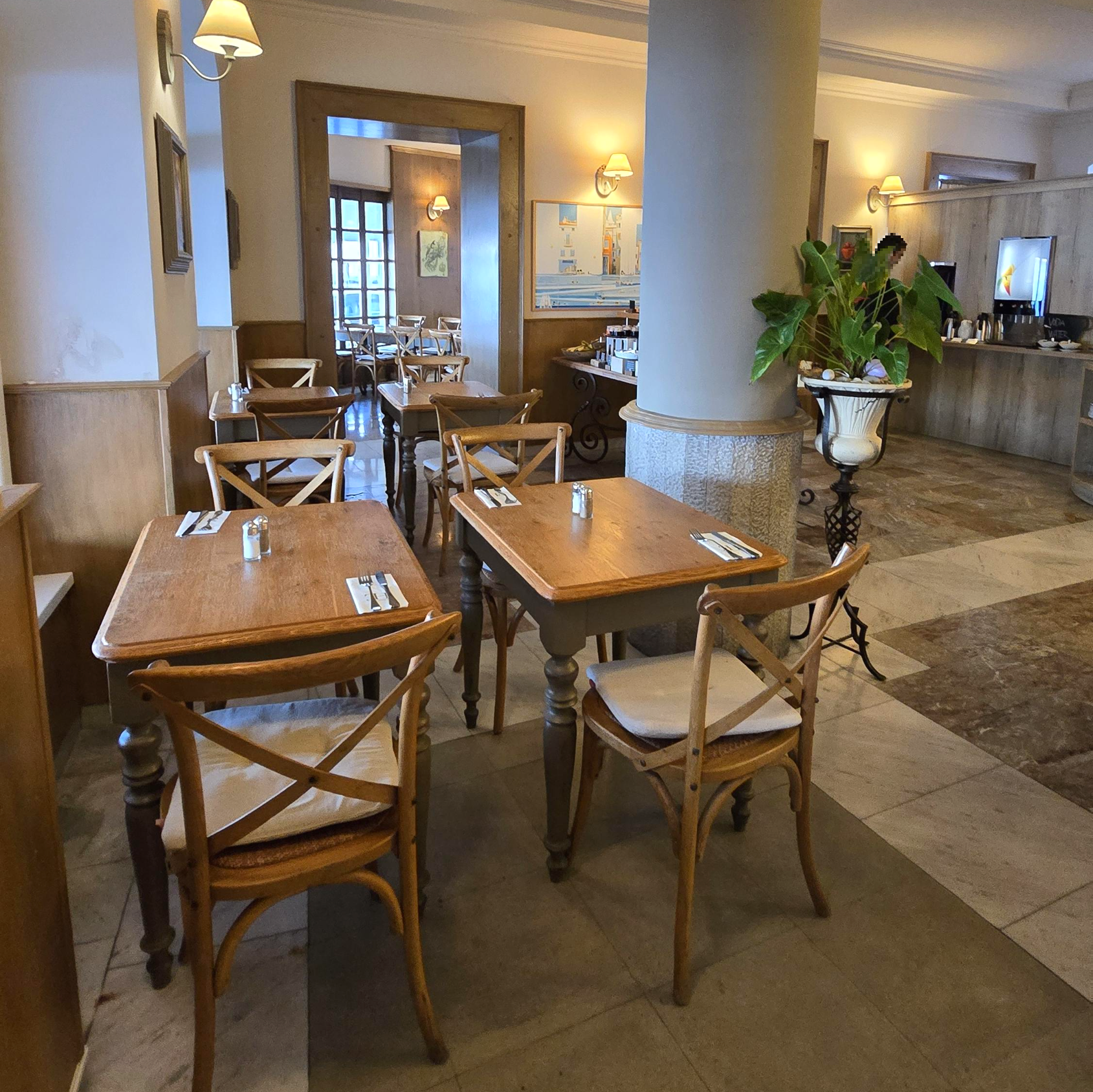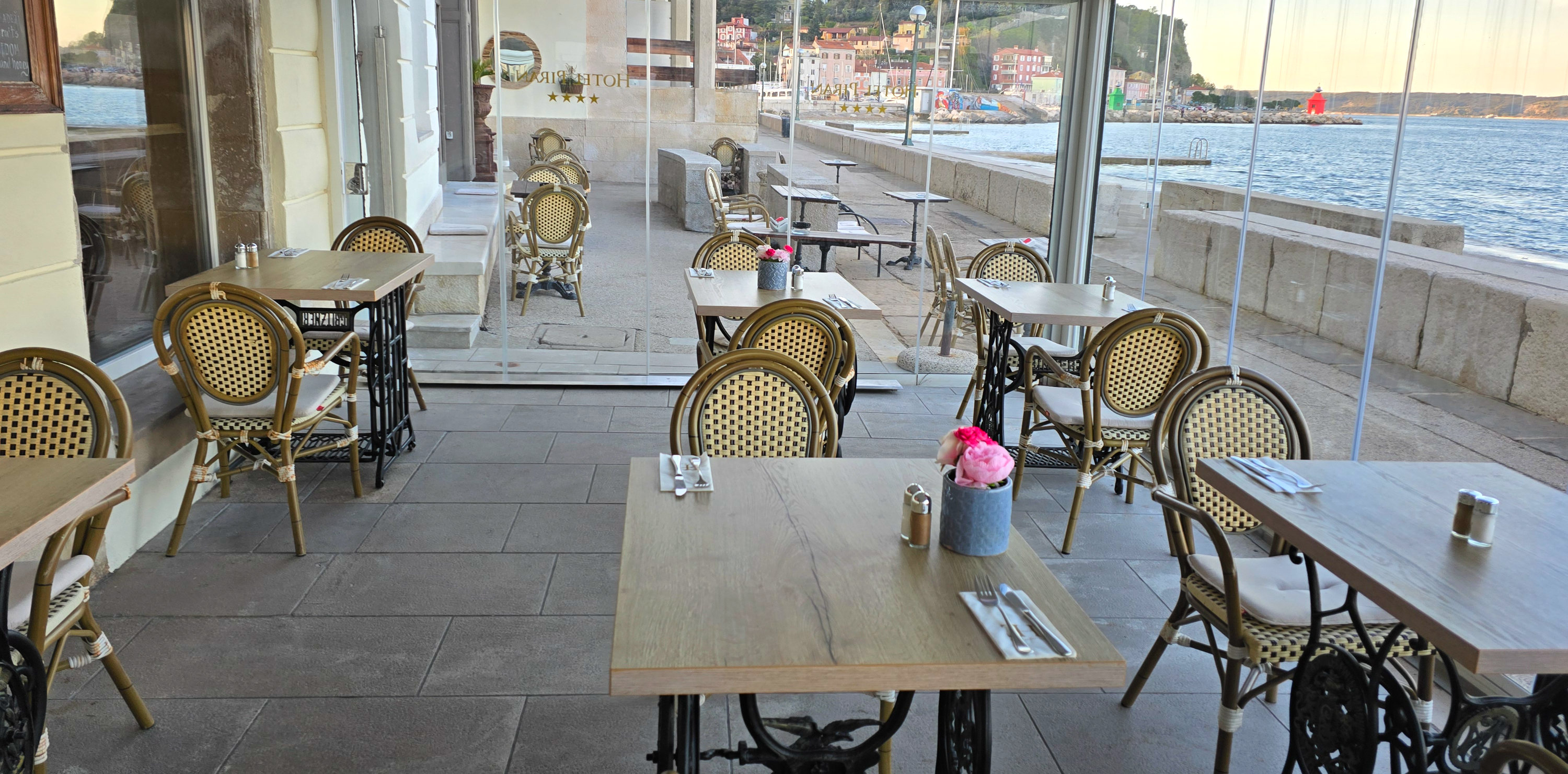 호텔 피란의 조식 뷔페는 원하는 자리를 선택해서 자유롭게 이용할 수 있었습니다.