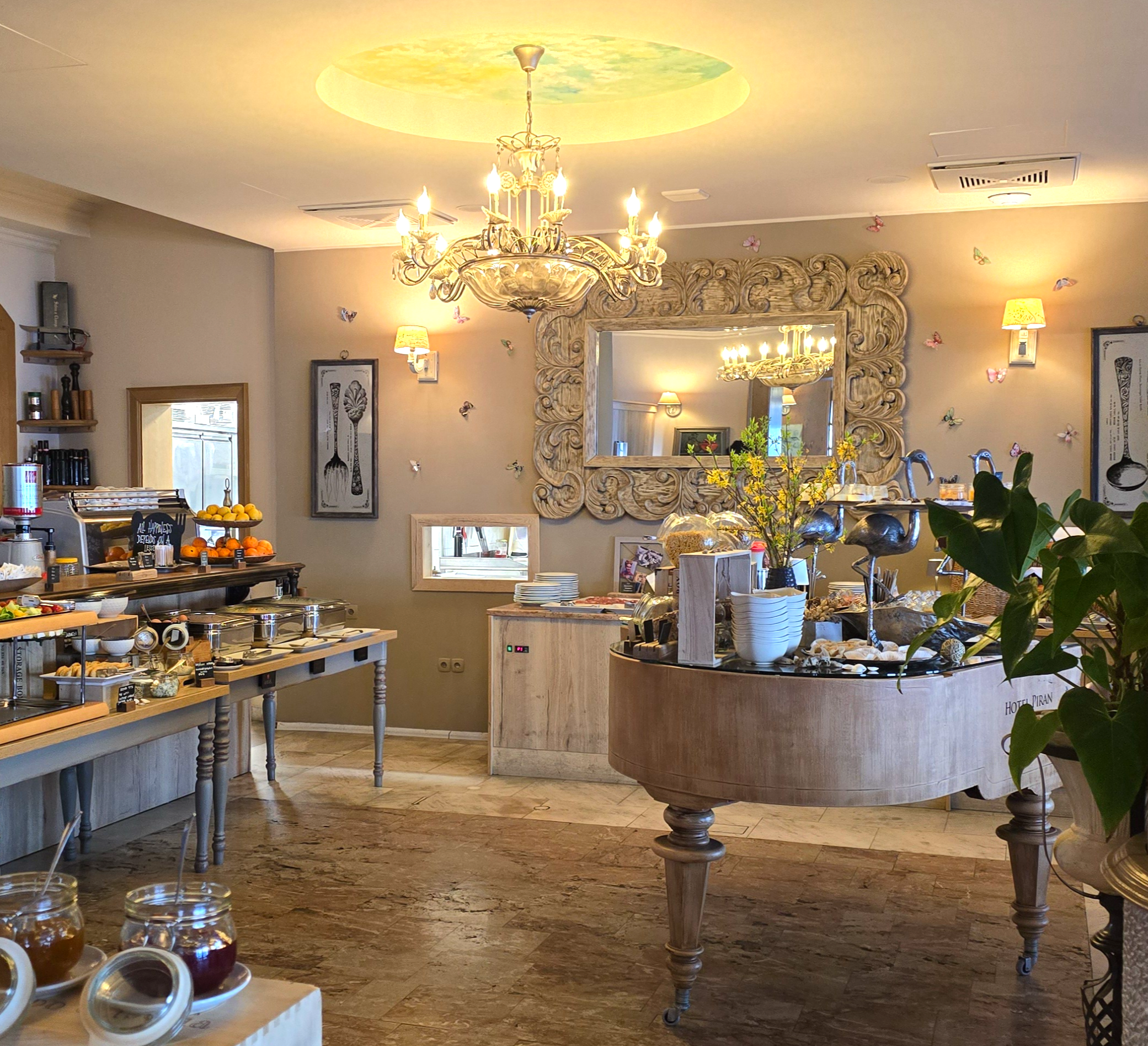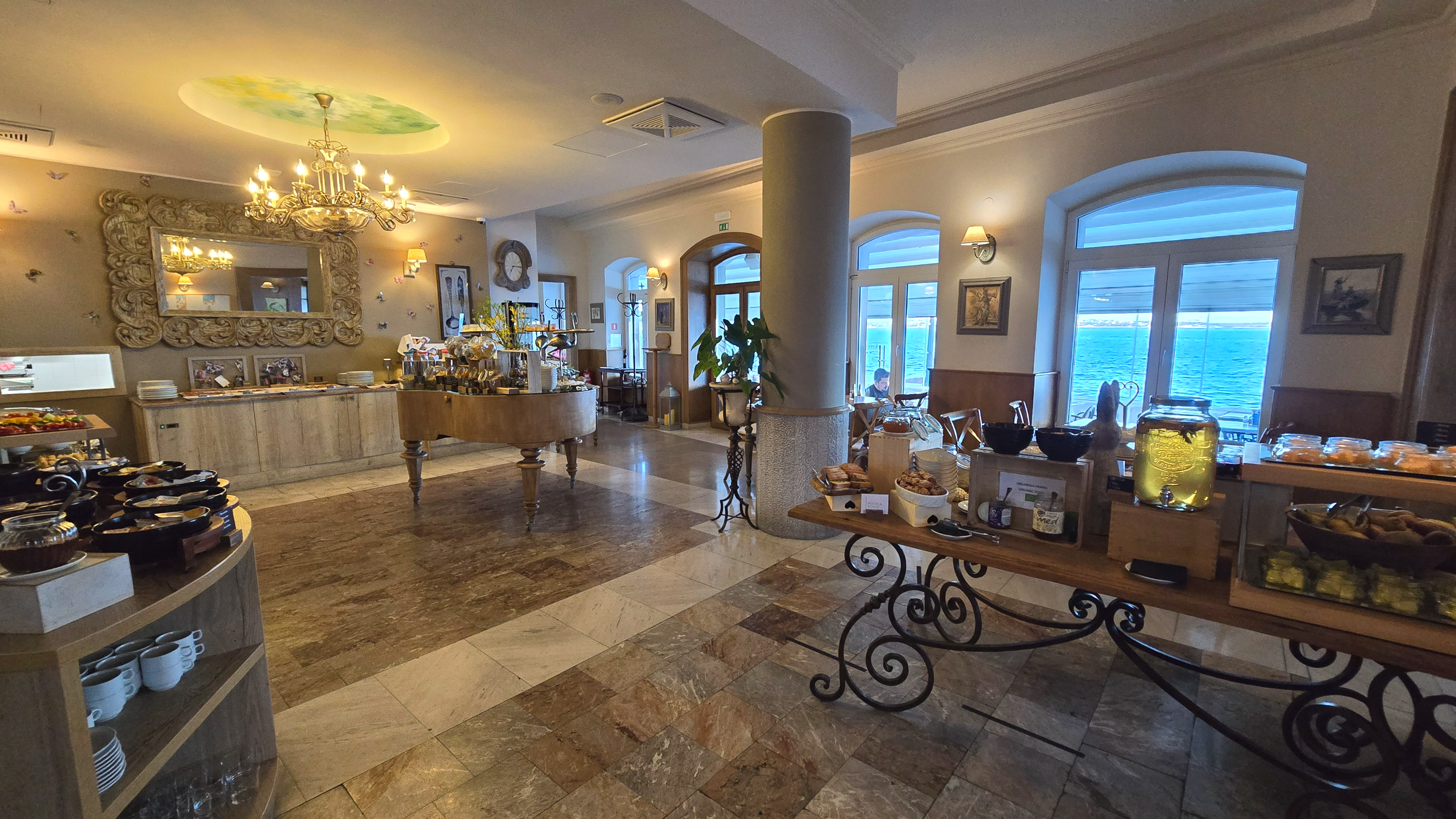 호텔 피란의 조식 뷔페는 원하는 자리를 선택해서 자유롭게 이용할 수 있었습니다.