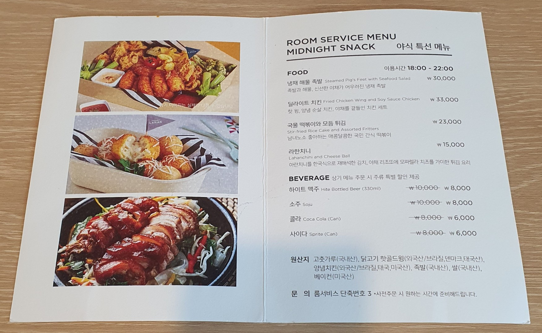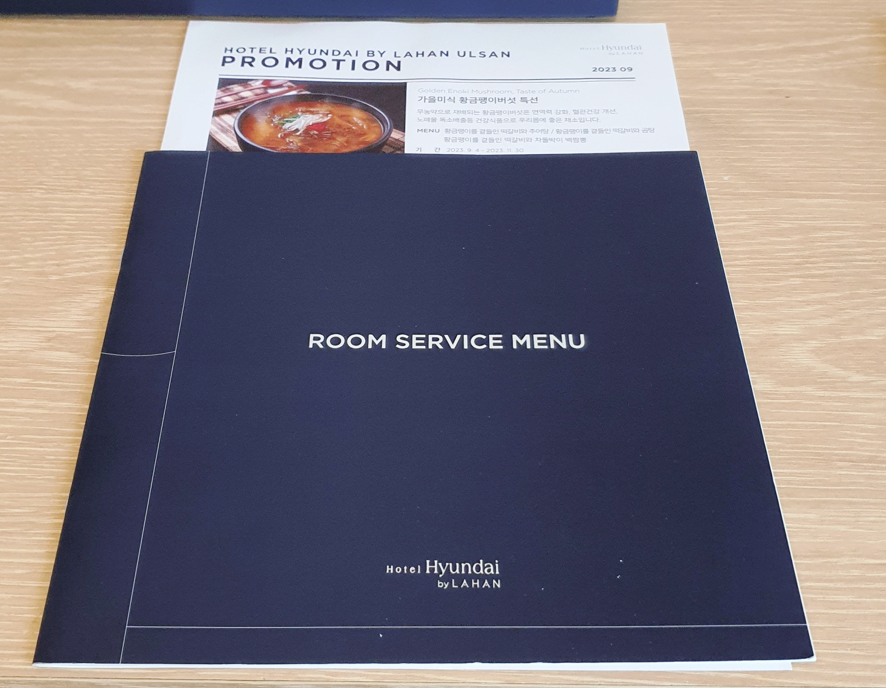 책상에는 룸서비스 메뉴도 있어서
