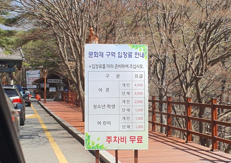 화엄사 입장료는 위 사진과 같습니다.
