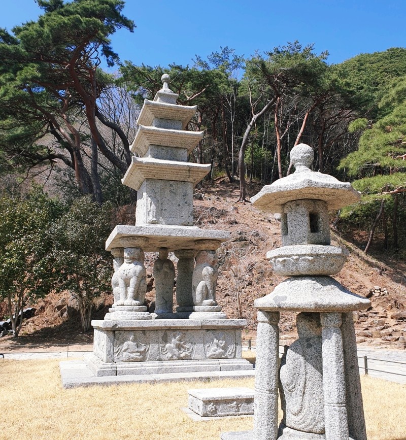 사사자삼층석탑을 보러 산 위쪽으로 올라갔습니다.