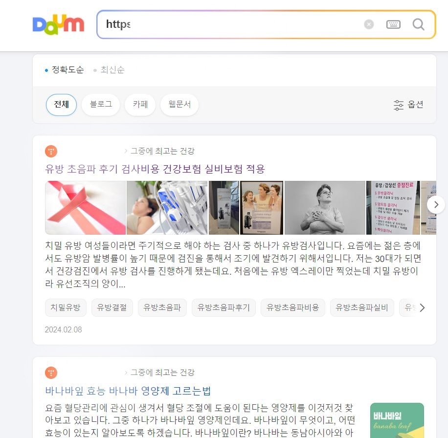 이 메시지를 받은 후에 제 블로그는 다행히 이제 다음 홈페이지에 검색하면 제대로 누락되지 않고 검색이 된답니다.