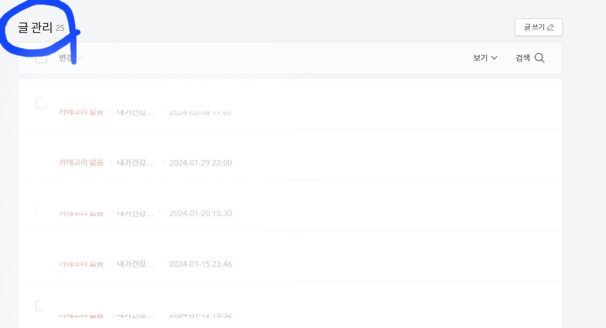 블로그 관리에서 글관리에 들어가면 내가 작성한 포스팅이 몇 개인지 확인할 수 있는데요.