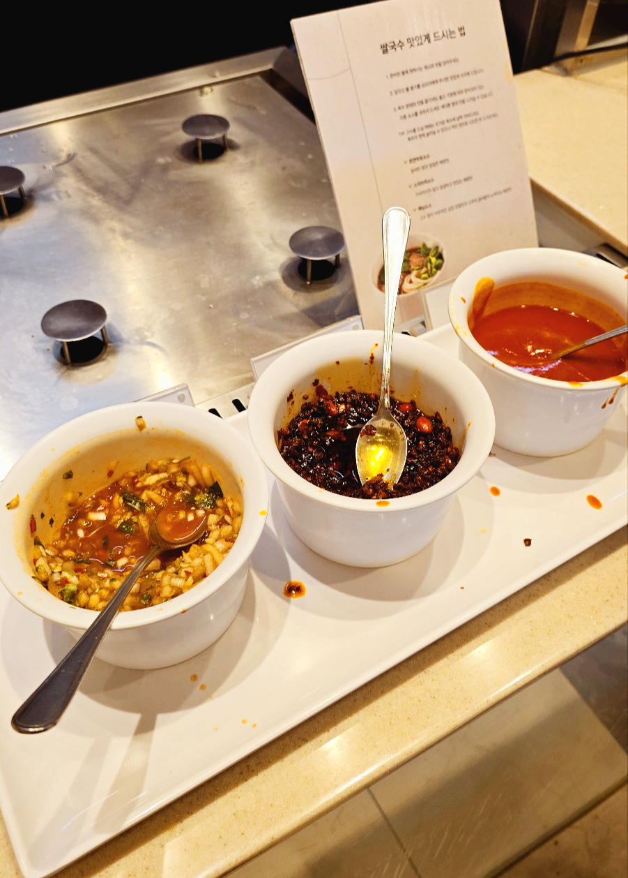 저는 매콤한 소스 올려서 뜨끈한 쌀국수로